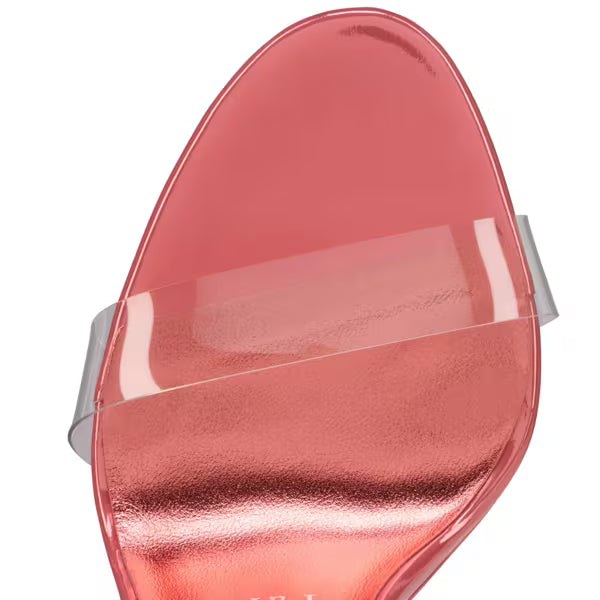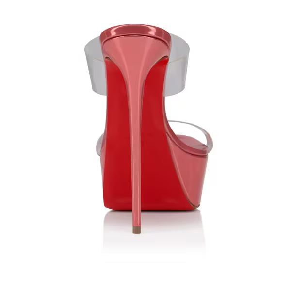 The emblematic Just Nothing Alta mule from Maison Christian Louboutin reveals elegant lines. It has a barely-there upper, and the foot is supported by a slender 150 mm heel and platform sole. It's secured by two see-through soft TPU straps for a daring, lightweight finish. The wedge sole and heel are crafted from Grapefruit pink laminated calf leather. This model is an e-commerce exclusive.
