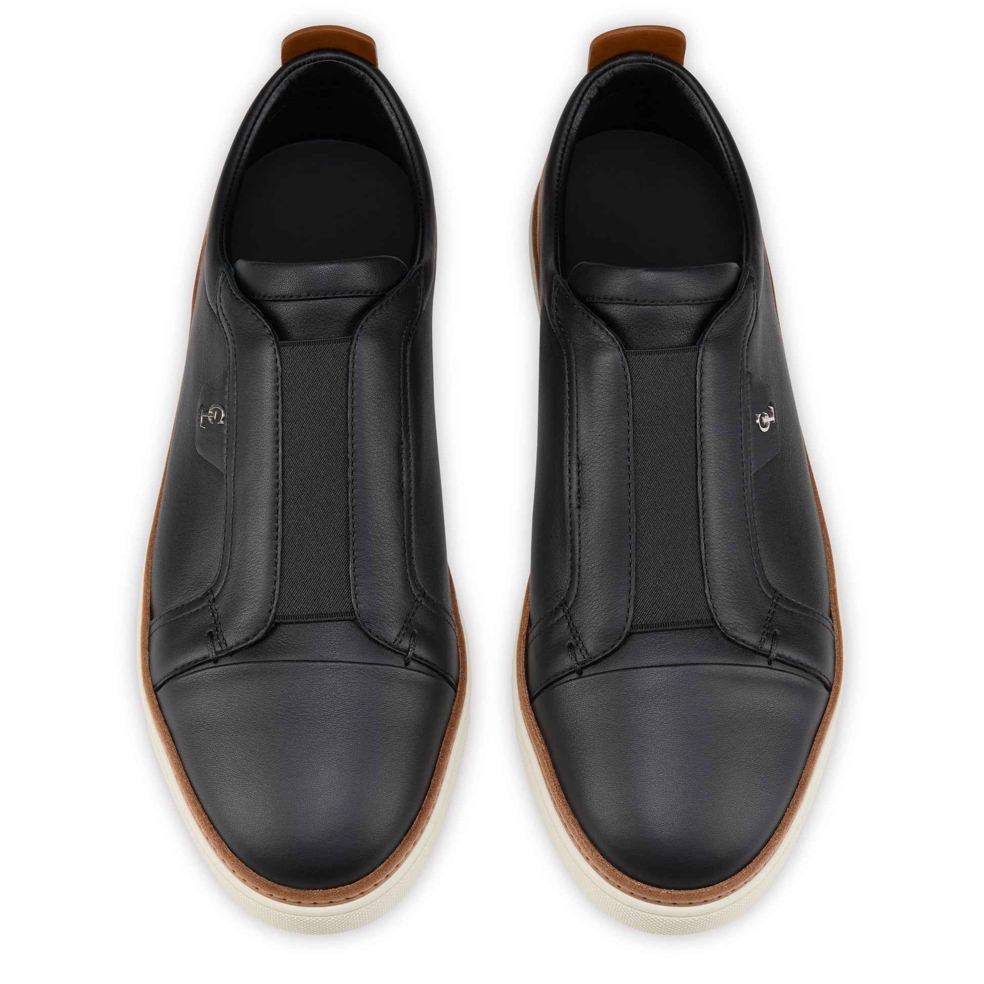 The Marcontonio is a sophisticated sneaker that blends contemporary style with signature Maison Christian Louboutin design. Crafted in black and Cuoio brown calf leather, and featuring a supple construction, the stitching encircling the rubber sole contrasts with the elegant upper. An iconic scar stitch on the back and hand-stitched eyelets complete the detail of this slip-on sneaker that portrays a sense of casual elegance. The signature Loubi red sole is the finishing touch.
