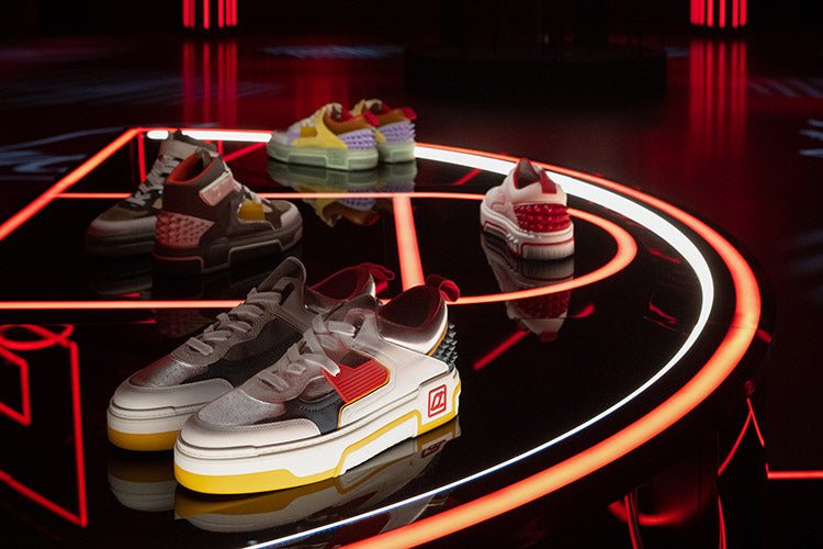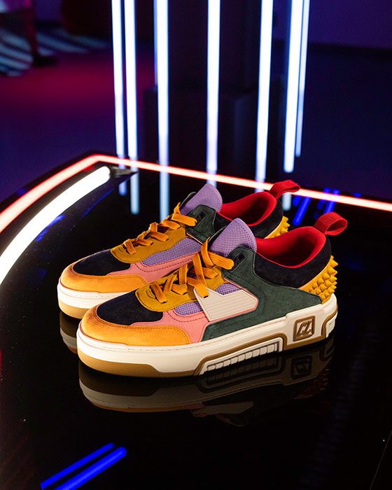 The trimmings details, strong graphic lines, signature spikes on the back counter, ‘CL’ varsity logo on colorful outsole and that ubiquitous red sole, are all hallmark elements celebrating the Maison’s unique style. Featuring a sporty technical silhouette, the construction of the Astroloubi is bursting with innovations.