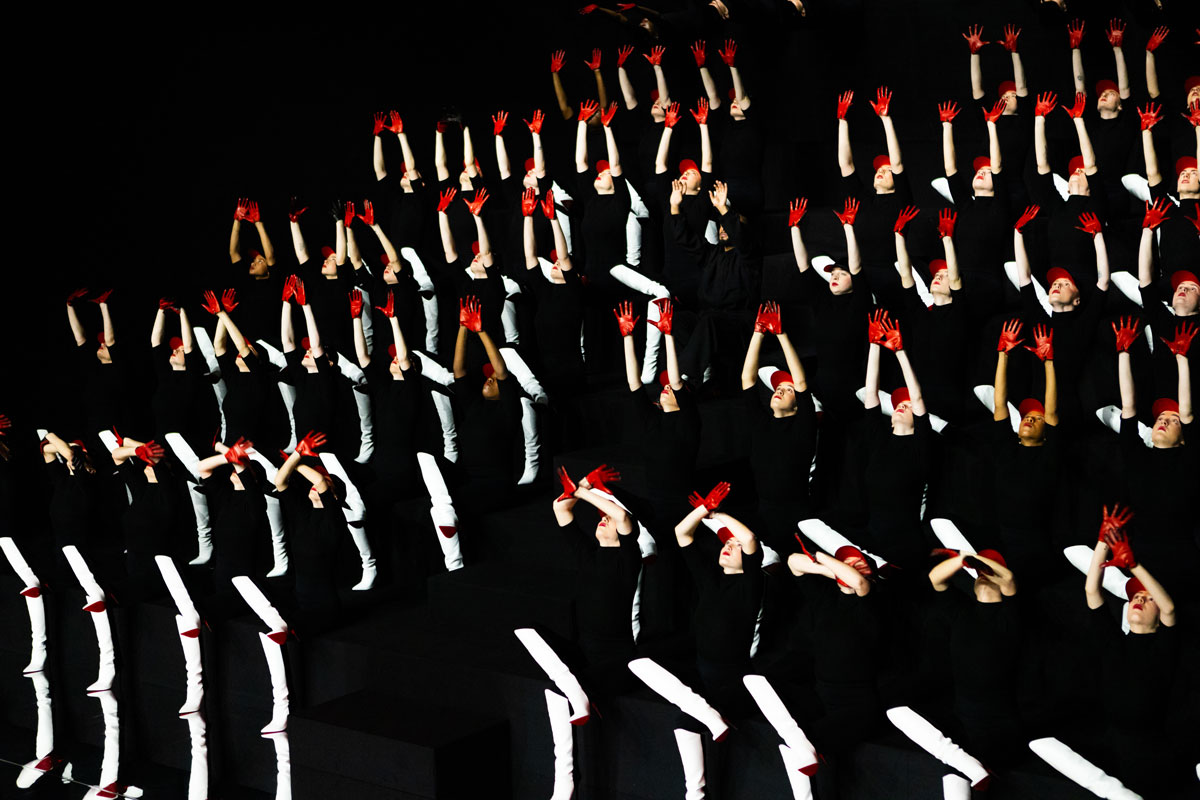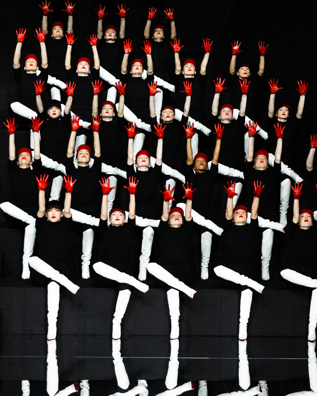 The choreographer, accompanied by 50 dancers wearing black and white boots Astribottas exclusively made for the show, introduced a new vision of dance called ‘tutting’, an interpretive style involving intricate movements of the body and hands in geometric shapes performed in synchronized harmony.