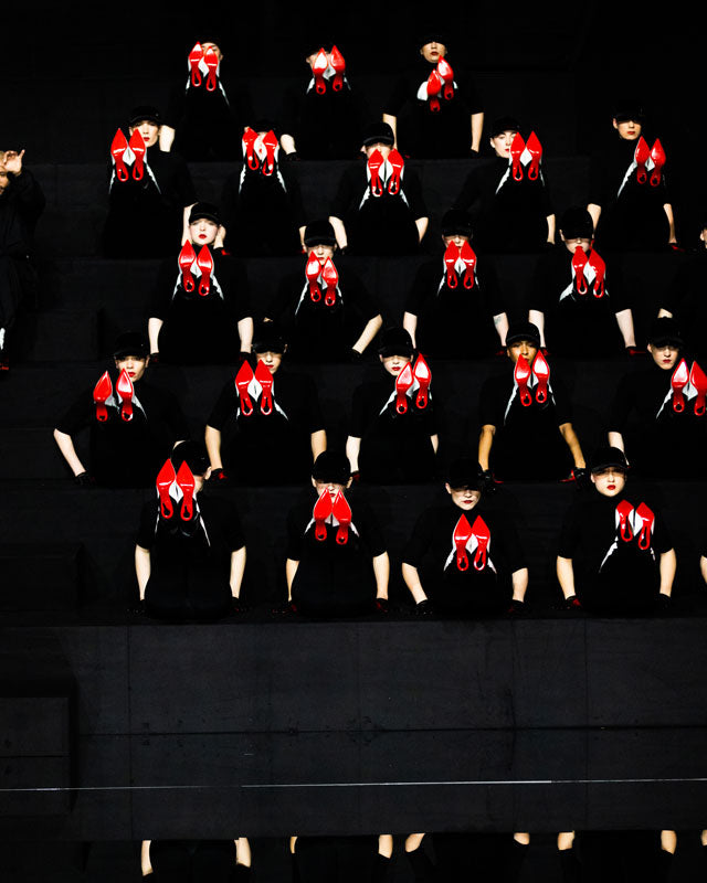 The stage, entirely covered with reflective material, created an optical illusion of infinite Red soles; the Maison's most iconic symbol.